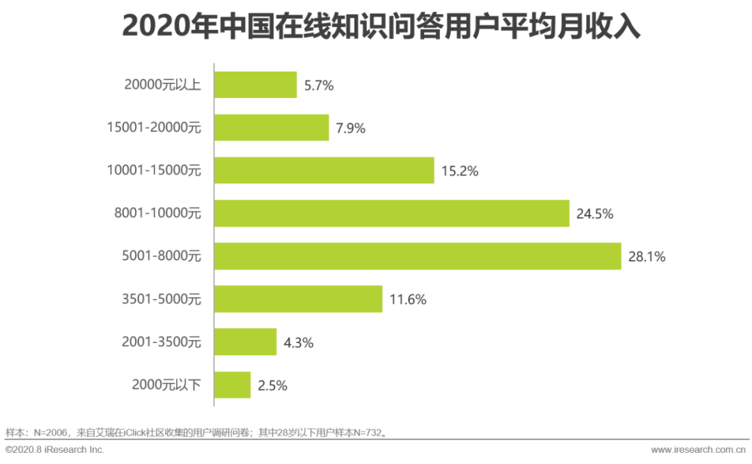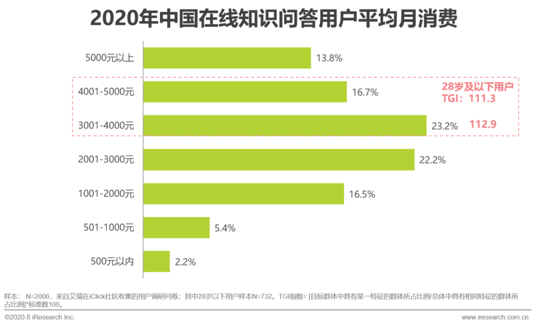在线知识问答用户收入水平可观,年轻用户具有更高消费力