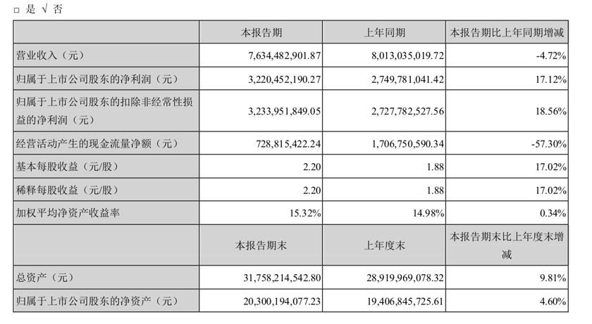 8月27日晚间,泸州老窖股份有限公司(以下简称“泸州老窖”)(000568)发布《2020年半年度报告》显示,今年上半年,公司实现营业收入76.34亿元,同比下降4.72%;归属于上市公司股东的净利润为32.2亿元,同比增长17.12%;经营活动产生的现金流量净额为7.29亿元,同比降低57.3%。