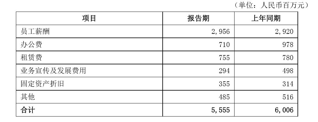 从管理成本来看,北京银行报告期内业务及管理费支出55.55亿元,成本收入比 16.74%,除员工薪酬和固定资产折旧费用以外,办公费、租赁费、业务宣传等费用都有大幅缩减。