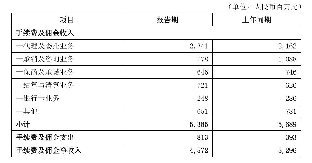 具体来看,该行收入结构中手续费及佣金净收入明显下降13.67%,为45.72亿元。而手续费及佣金支出则翻了两倍多,由去年同期的3.93亿元猛增至报告期内的8.13亿元。