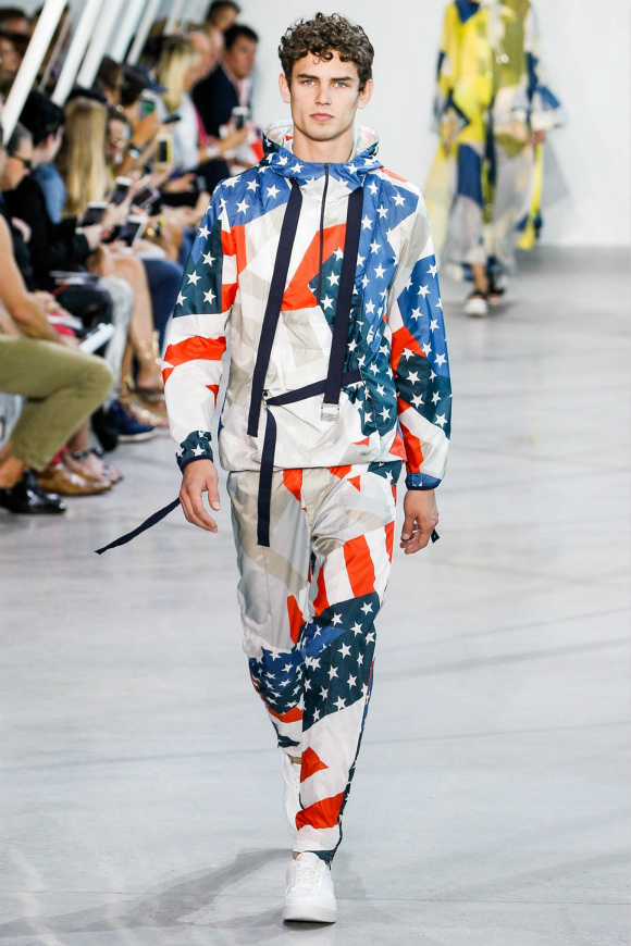 以鳄鱼标志闻名的法国品牌 Lacoste 在过去的十年间不断努力从网球运动服装品牌转变为以年轻舒适为靶向的轻时尚新形象。身为法国队出赛队服的设计品牌, 它相当敬业地在秀场上向奥运会致敬——品牌创意总监 Felipe Oliveira Baptista 以“身披国旗的运动员”为灵感献上了一个由 Polo 衫和超大尺码外套的男装系列。