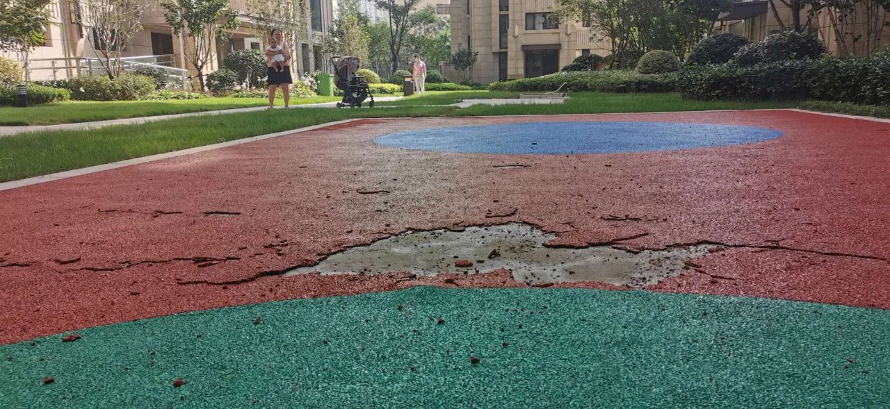 然而,在金隅和府交付之后,业主们发现这社区景观与宣传相差很大。界面山东在小区内探访发现,所谓的活动区没有任何的健身器械,而且彩色地面已经破损,孩子和老人都不敢到此处活动。不要说现代化的高档社区,金隅和府社区景观都比不了十年前建成的封闭小区。