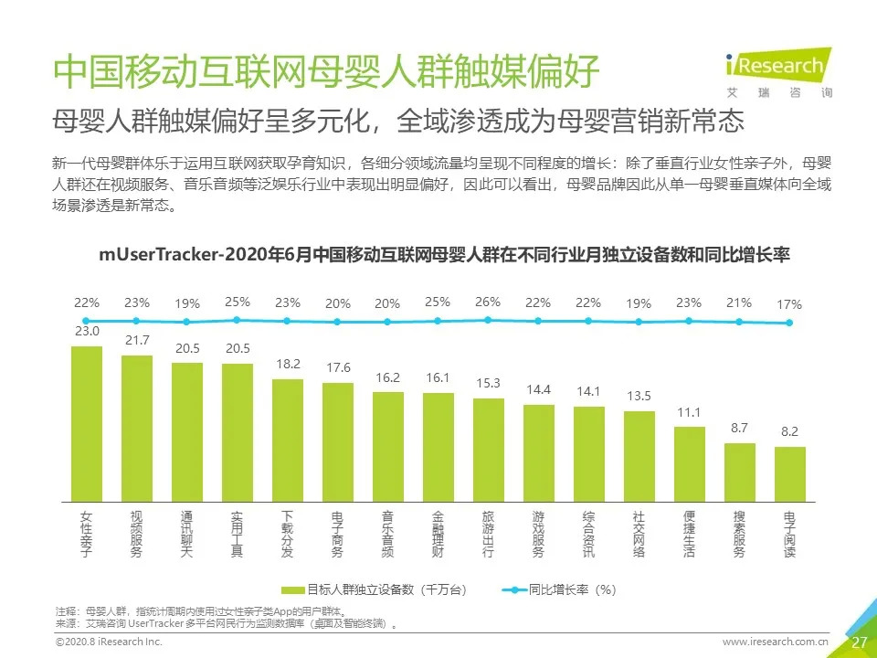 母婴人群触媒偏好呈多元化,母婴垂类媒体细分领域队伍日益壮大,非垂类媒体和新媒体入局母婴行业,为母婴品牌和母婴人群提供更多选择,从单一母婴垂直媒体向全域场景渗透成为母婴营销新常态。