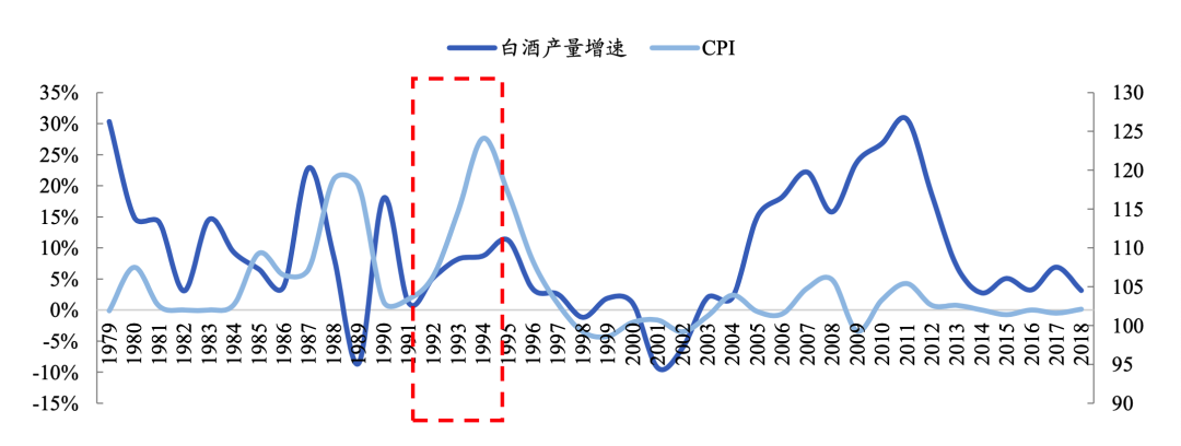图:白酒产量增速与CPI曲线对比图(数据来自国家统计局、中国酒业协会)