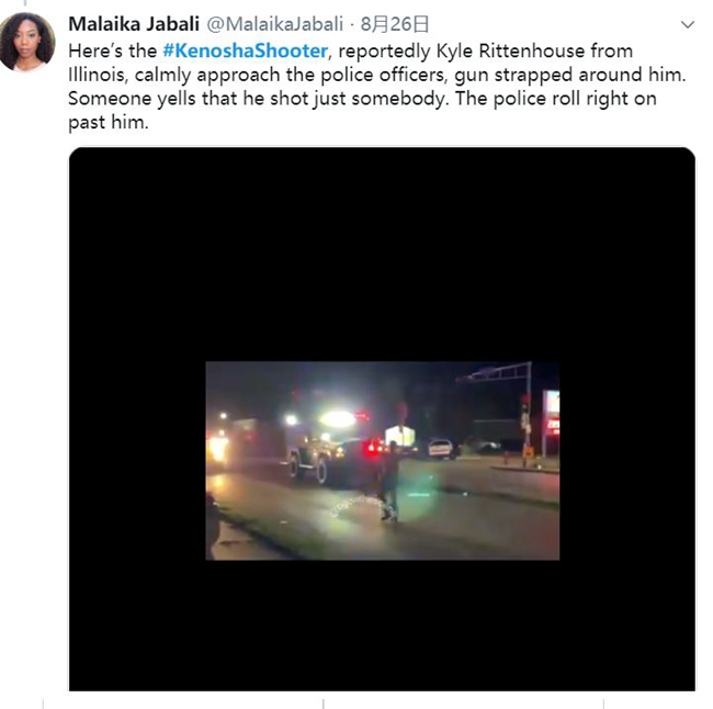目击者拍摄的视频显示,在枪击发生之前,警方曾给里滕豪斯和其他持枪民众发水,还有警察对义务巡逻者表示感谢。