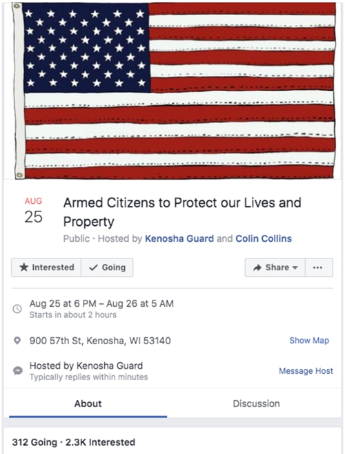直到周二晚枪击案后,Facebook才将“基诺沙卫队”的主页下线。