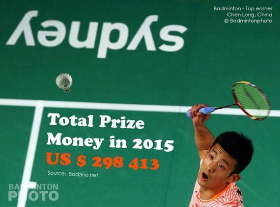 近日,世界羽联公布了2015年羽毛球球员奖金排行榜。中国男单球员谌龙以29.8413万美元,名列排行榜榜首。在今年世界羽联11站超级赛中,谌龙独揽5站冠军,其中还包括3站积分最高的顶级赛冠军。不仅如此,他还在世锦赛中击败李宗伟蝉联冠军。单打积分超过10万分的成就,甚至连林丹也从未做到。这样出色的羽毛球球员,一年的总奖金数为30万美元。