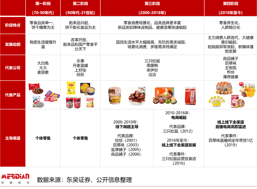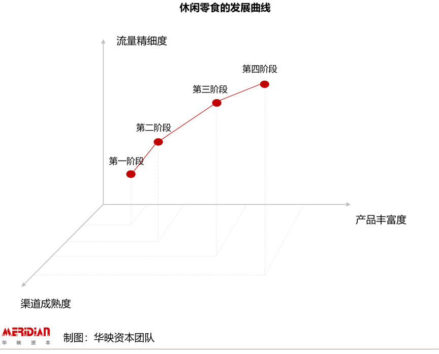 纵观整个休闲零食的发展历程,可以看出渠道成熟度,产品丰富度以及流量精细度决定了休闲零食的发展路径。