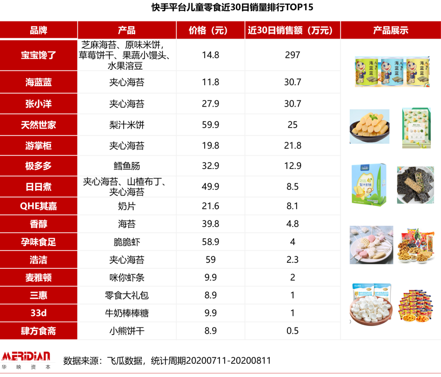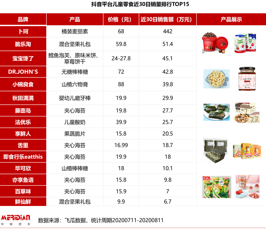 抖音和快手作为两大流量主阵地,是新品牌投放推广的必争之地。通过抓取两大平台儿童零食相关商品近30日的销售排行可以看出: