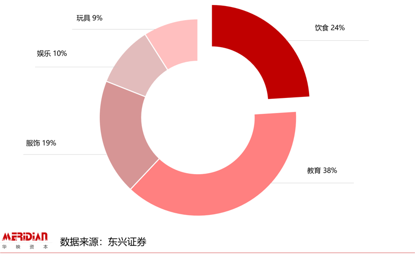 从消费领域来看,多数妈妈在奉行“学好”,“吃好”和“穿好”的三好原则。教育支出占比高达38%,其次为食品饮料支出,占比达24%,服饰支出占比达19%。