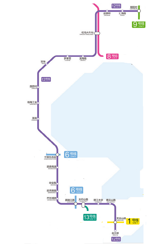 值得注意的是,这条地铁线路也是连接红岛、胶州和西海岸新区的重要环湾线。特别是12号线一期末工程从中德生态园自上马朝阳村站,串联中德示范园、上合示范区、红岛站等重要板块,实现北岸城区与西岸城区的快速衔接,并为上合示范区提供轨道交通支持,从而构建起环胶州湾轨道交通的基础和骨干。12号线支线还将直达胶东国际机场,显然将大大方便西海岸市民来往出行。