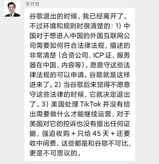 白宫亲自下场逼迫TikTok切割在美业务的“决心”,日渐明晰。而特朗普还计划从中抽取一大笔费用,作为Key Money(原意是租房者付给房东的看房费,这里特朗普以“房东”、“管理者”自比)。这种做法让一向立场暧昧的前谷歌高管李开复,都表达了不可思议的情绪:“当时谷歌是退出中国,是因为不愿遵守中国相关法规而选择自己退出。此次强迫收购+45天+政府收取中间费的做法,是不可思议的。”