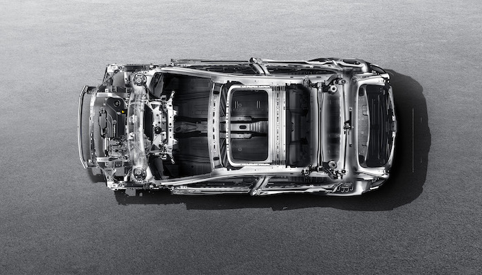 车顶线条自A柱处一路下压,收于黑化处理的C柱之上,配合甩尾式水切镀铬饰条,呈现出悬浮式车顶的视觉效果。悬浮式车顶之下,车窗线从A柱缓缓上扬,到达C柱后转而与车顶线一起下压,令整车侧面线条更显流畅。