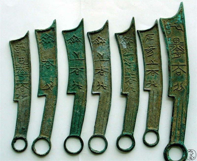 刀削形,起源于渔猎经济工具,以齐国的刀币最为古朴精美。有的铸有外廓,不仅显得美观,而且增强了牢固度,以防止磨损。