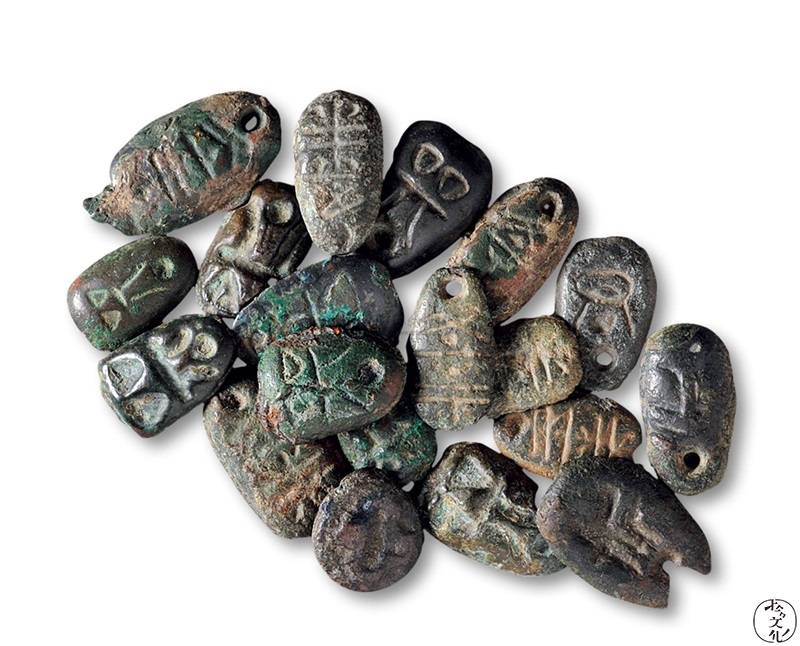 由贝币演化而来,蚁鼻喻小,意即小钱,俗称“蚁鼻钱”“鬼脸钱”,现存最早的金币就是楚国的“郢爰”(黄金称量货币),呈板形,由可固定的金钣印铸出来。