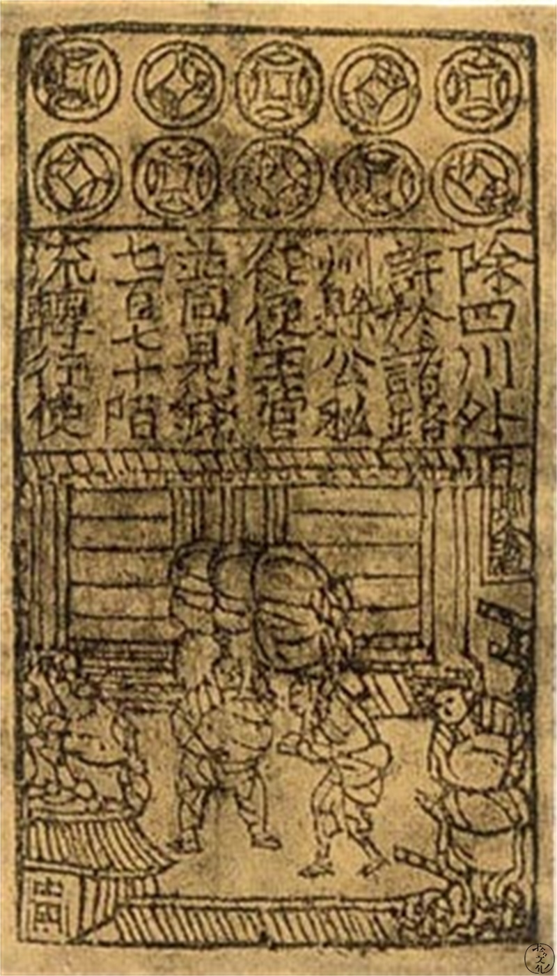 北宋时,由于铸钱的铜料紧缺,政府为弥补铜钱的不足,在一些地区大量地铸造铁钱。据《宋史》记载,当时四川所铸铁钱一贯就重达二十五斤八两。在四川买一匹罗(丝织品),要付一百三十斤重的铁钱。铁钱如此笨重不便,纸币交子就在四川地区应运而生。北宋的纸币主要有交子,南宋有会子、关子。