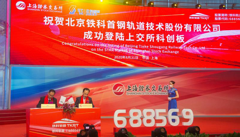 8月31日,铁科轨道(688569.SH)登陆科创板,发行价22.46元每股,午间收盘上涨58.55%。