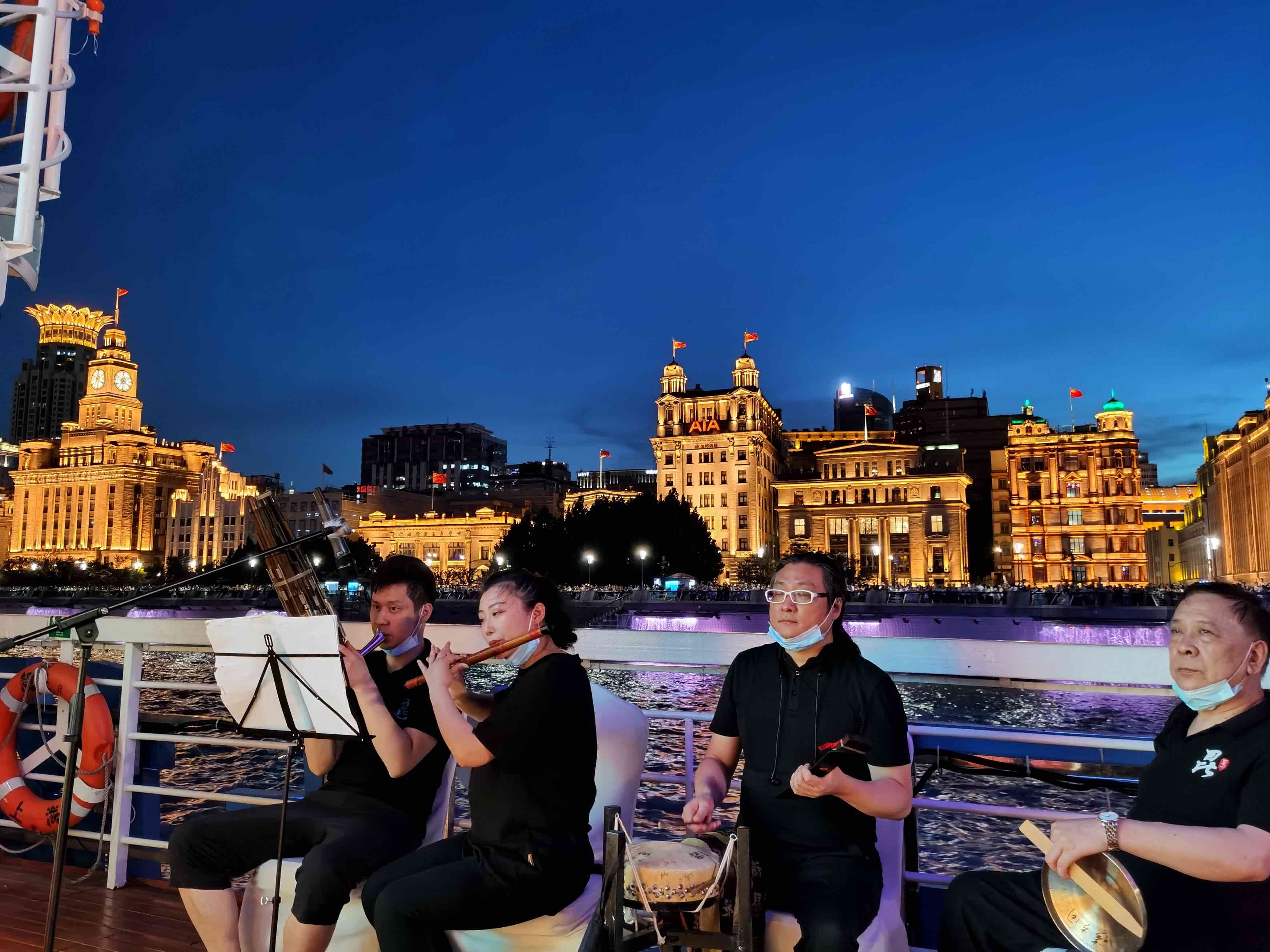 这是上海快乐船长游船公司今年7月新推出的夜游航程。除了在黄浦江上徜徉2小时,船上提供五星酒店级别的自助餐,还新邀请来了上海昆剧团,在甲板上表演“浦江兰韵”专场——这也是昆曲第一次搬上黄浦江。增加了昆曲表演的航程,每个周末几乎场场卖光,而且同时受到本地人和外地游客的欢迎。