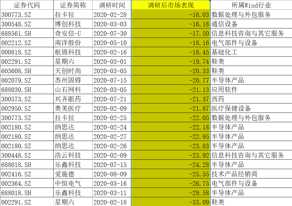但也有公司接受调研后,二级市场并未买账,反而出现了大幅下跌。