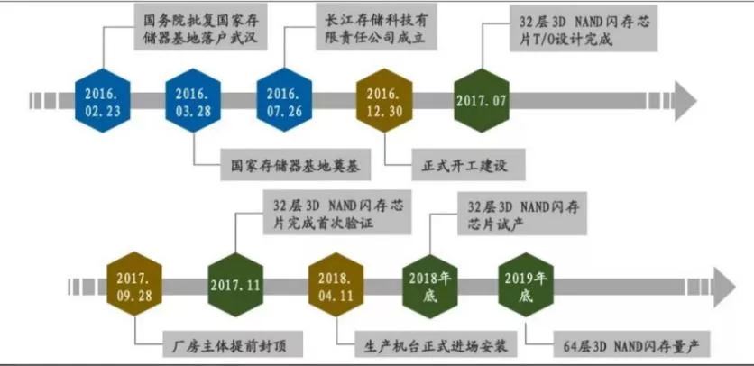 2016年3月武汉新芯宣布,将投资240亿美元在武汉打造一个世界级的半导体存储企业,集中精力研究生产NANDFLASH和DRAM。7月,由大基金、武汉市牵头,各方在武汉新芯公司的基础上成立了长江存储,发起人包括紫光集团、大基金、湖北国芯产业投资基金合伙企业和省科投。其中,紫光集团出资197亿元人民币,占51.04%。