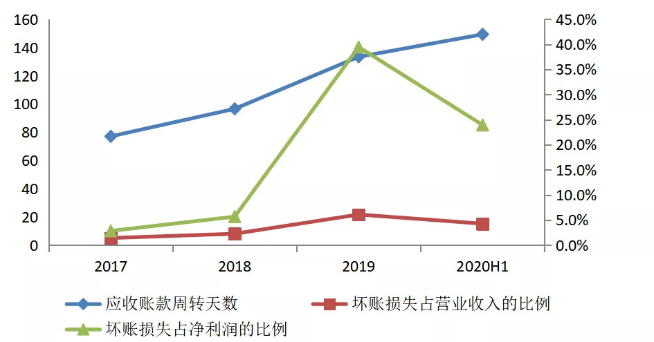 如果以2019年综合计提比例21.31%对20年中报期初的应收账款的账面余额进行计提,则计算出的计提金额为8.9亿元,较中报实际计提额7.5亿元,高出1.4亿元。