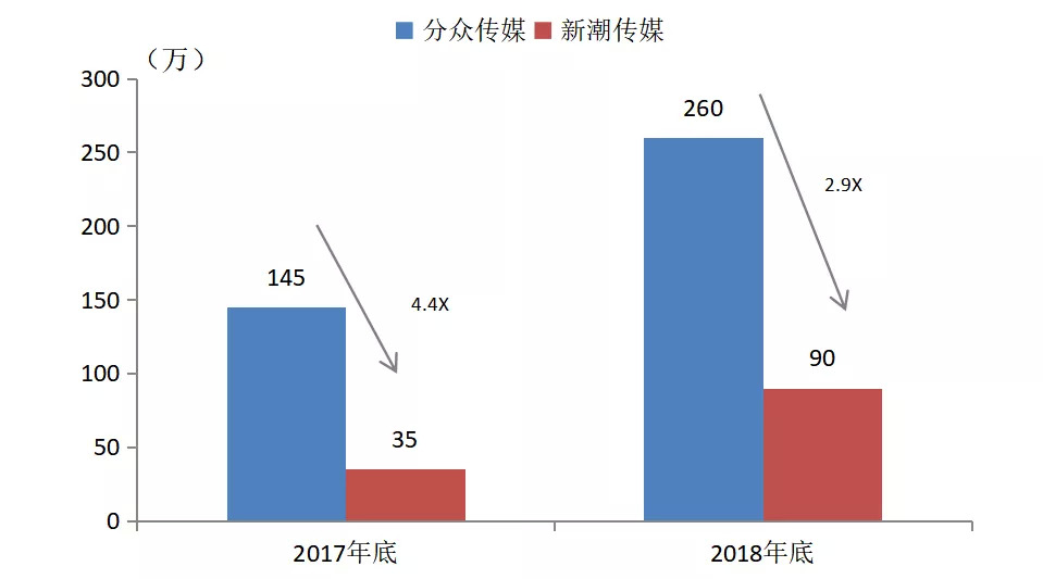 仅仅在18年Q2一个季度内,分众的自营点位从3月末的160万个扩张到7月末的217万个,涨幅达36%,当季营业成本相较于Q1环比增长22%。到18年底,新潮和分众的点位数差距由4.4倍缩小到了2.9倍,竞争焦灼。