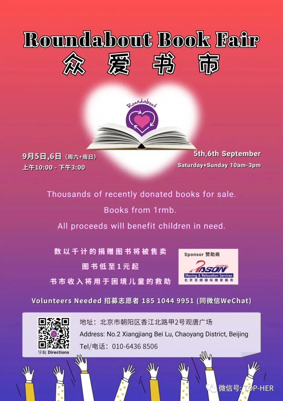 2020年9月5日、6日,公益组织平台众爱将举办众爱2020年首届书市,这也是国内首家慈善公益商店发起的第一场线下书市。书市所售卖的图书种类包括中文类儿童、成人书籍;英文类儿童、成人小说,咖啡桌画册;小语种类包括德文、法语等书籍。本次展出的书籍全部为爱心人士捐赠所得,众爱会将书市所得收入全部用于帮助众爱救助的孩子们。阅读即慈善,阅读在改变我们自己的同时,也在帮助着他人。TOPHER邀您一起加入爱心市集为孩子们献出一份力。