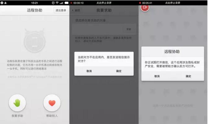 当对方尝试打开一些微信等涉嫌隐私应用的时候,会先弹出私密信息警告,在求助人点击允许后才会进入相应应用。