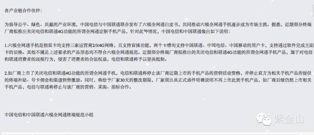 电联推动全网通手机的力度很大,据说已报国家工商总局将全网通标准定义为行业标准,誓死捍卫用户选择的权利。(此事之前紫金山已有文章分析过始末,点我。)