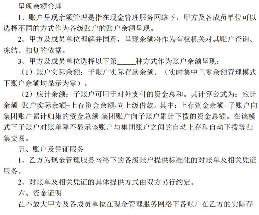然而,与归集股东对立的另一派中小股东对此持不同的观点。界面新闻记者注意到,根据*ST康得2019年5月11日对深交所的回函,其中披露了康得集团与北京银行西单支行签署的《现金管理协议》,康得集团及成员单位可以选择以账户实际余额或应计余额的呈现,北京银行为现金管理服务网络下的各级账户提供标准化的对账单及相关凭证服务,对账单及相关凭证的具体提供方式由双方另行约定。