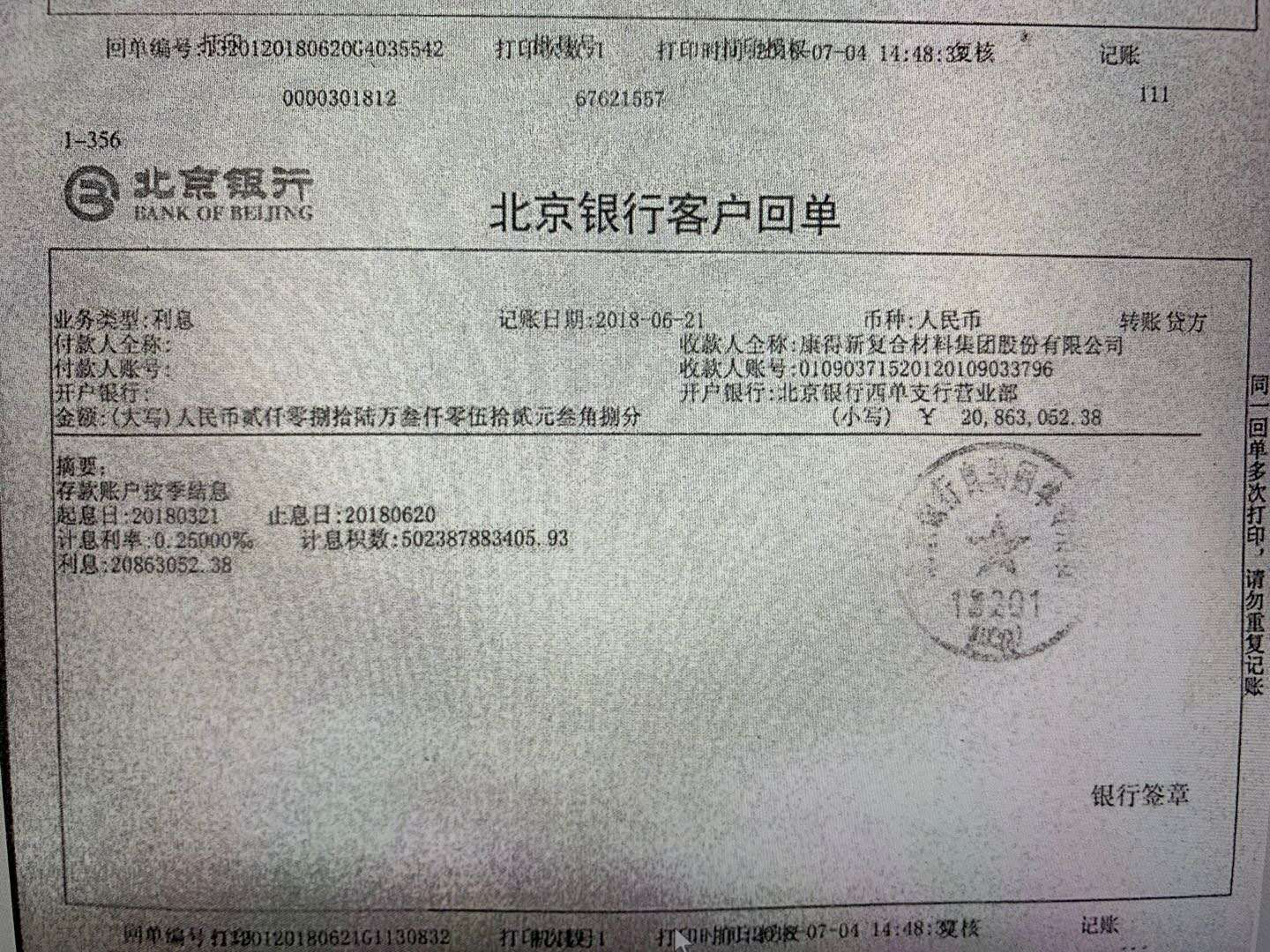 证监会6月28日下发的《行政处罚及市场禁入事先告知书》显示,根据康得集团与北京银行西单支行签订的《现金管理业务合作协议》,康得新及其合并财务报表范围内3家子公司的4个北京银行账户资金被实时、全额归集到康得集团北京银行西单支行3258账户,康得新及其各子公司北京银行账户各年实际余额为0。