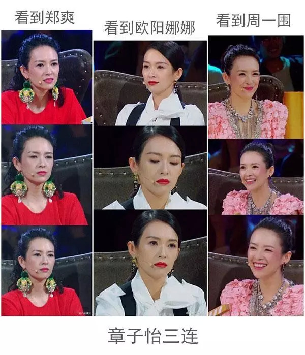 想想章子怡看到郑爽、欧阳娜娜、周一围时截然不同的表情,当时就有吃瓜群众问Angelababy什么时候上节目,很多人都想看到章子怡点评baby时的表情。