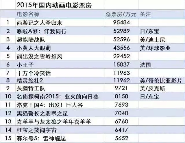 如图所示,2015年前五名过2亿票房的动画电影全是三维的。当然低幼向的作品也有自己的市场,更多是靠周边或者低幼游戏赚钱。市场定位和商业模式也不太一样,这块市场中国的竞争者已经很多,但少有知名作品,变现方式也比较简单直接。