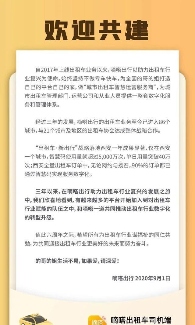 嘀嗒出行在六周年汇报信中表示,“目前,西安出租车90%扬召订单已通过智慧码实现服务数字化。自今年2月份起,出租车智慧码单城用量累积超过5,000万人次,单日智慧码用量最高突破40万人次。”