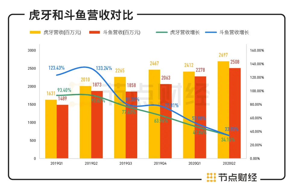 虎牙和斗鱼近日发布的2020年Q2财报显示,两家公司整体业绩都算亮眼,收入与净利润均创新高,不过营收增速明显放缓。实际上,从2019年Q2开始,两家公司的营收同比增长率就在持续下行。