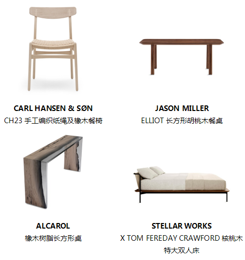 有人说忠于原木是一种情怀,简约的线条勾勒出的静远质感,总能带给心灵无法言语的触动。在生活的举手投足间,融入淡木色的悠然雅致,在喧嚣都市快节奏奔跑的生活中,给心留下一方栖息之所,释放源自本真的纯粹能量。丹麦历史最悠久的家具制造商之一CARL HANSEN & SØN以淡木色的椅子还原手工雕琢的自然极简;先锋设计师品牌JASON MILLER则将现代设计的细节融入木质餐桌之中,开启质感美学。此次全新入驻连卡佛的家居品牌ALCAROL,利用前卫创新科技将天然材质化作特色家居,采用隐形或透明物质来保护天然材质,正如这款橡木树脂长桌,完美展现出岁月流逝中自然赋予原木的独特痕迹。 STELLAR WORKS携手Tom Fereday打造的The Crawford系列特大双人床,将强而有力的钢制框架、优雅的核桃木和柔软的织布形成了鲜明的质感对比,充分彰显你的独到品位。