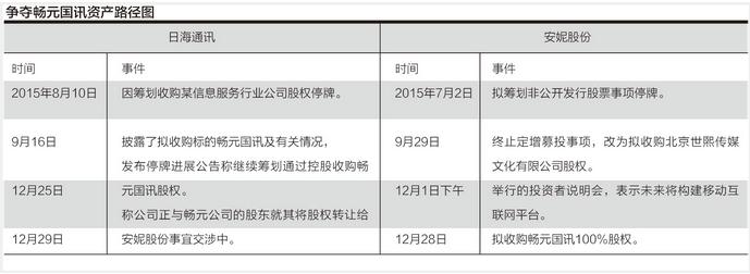 目前可以明确的是,从上述日海通讯与安妮股份披露的时间节点可见,后者完全属于半路杀出,并且是中途转道狙击俘获了前者的收购标的畅元国讯,致使日海通讯4个多月的停牌筹划或将竹篮打水。