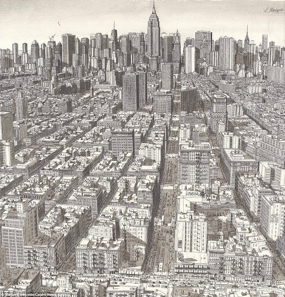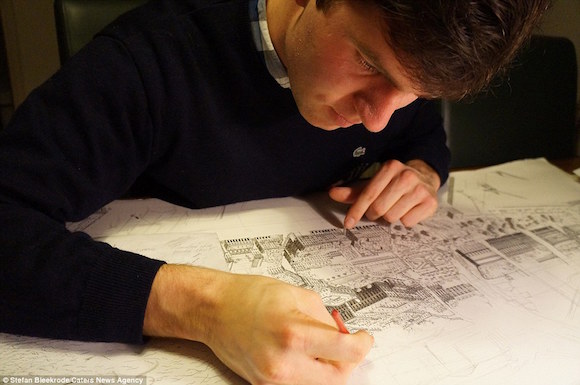 因为从10岁起,他就完完全全凭着记忆,用钢笔画自己到过的城市,作品能活活逼死密集恐惧症患者: