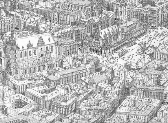 你大概很难相信这样事无巨细的作品不是对着照片画的。但事实上,Stefan确实是受到上天眷顾的那一小撮人之一。他从10岁开始画自己在头一年的暑假里呆过的法国和比利时城市,沿着记忆的脉络一点点追溯脑海里记录下的每个细节。