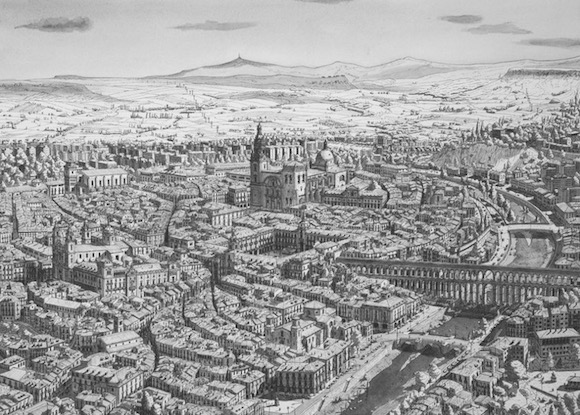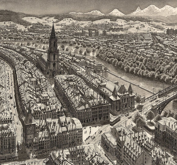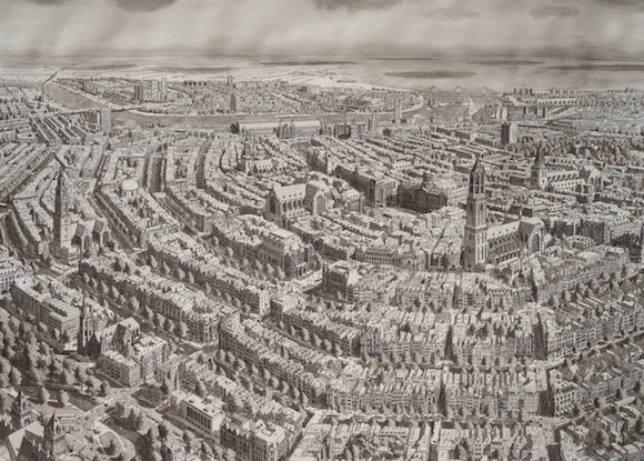 但是后来,Stephan终于不仅仅满足于画他看到的城市了。他开始绘制自己想象中的城市的样子。它们当然也是基于现实版的城市,但你不得不开始怀疑:是有怎样的偏执,才会如此钟情于这种点与线的无休无止的重复?