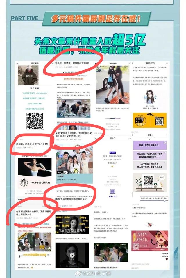 8月31日,《中餐厅4》官微发布的战报中,将多篇标题含有“赵丽颖没教养”“赵丽颖焦虑”“没礼貌、低情商”等用语的文章截图列入舆论战绩,并以此作为节目覆盖人群广泛、话题出圈的论证。这迅速引发了网友热议和赵丽颖粉丝的不满。