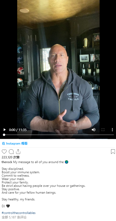 Yhoo Enterntainment 9月3日消息,美国男演员“巨石强森”(Dwayne Johnson)今天在社交媒体Instagram上称,他和家人的新冠病毒检测结果呈阳性。