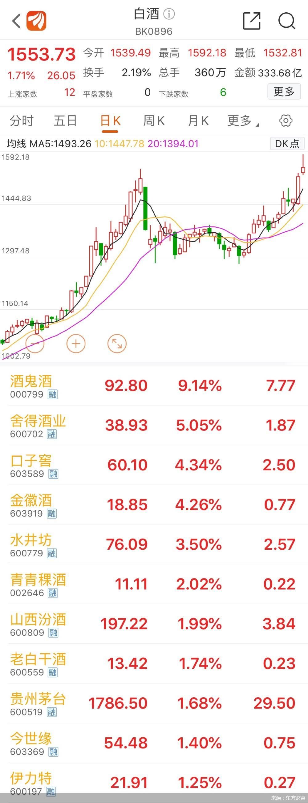 8月31日,贵州茅台酒股份有限公司(以下简称“贵州茅台”)股价再创新高,盘中最高触及1816元/股,截至发稿,日涨幅1.68%。值得注意的是,贵州茅台上次股价创新高是在7月13日,时隔一个半月,茅台股价再创新高,截止今日收盘,贵州茅台股价1786.5元/股,公司总市值达到2.2万亿。北京商报记者发现,今日白酒板块多支股票飘红,截至发稿,白酒板块涨幅1.71%,其中酒鬼酒涨幅9.14%,以92.8元/股收盘;舍得酒业涨幅5.05%,以38.93元/股收盘;山西汾酒涨幅1.99%,以197.22元/收盘。