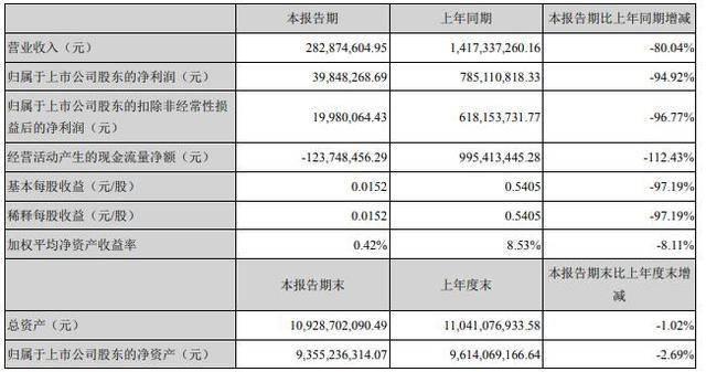 据8月7日宋城演艺发布的半年度数据显示,2020这上半年,公司实现营业收入2.83亿元,同比下挫80.04%;实现归属于上市公司股东的净利润为3984.83万元,同比大幅减少94.92%;归母净利润3984.83万元,同比下降94.92%。