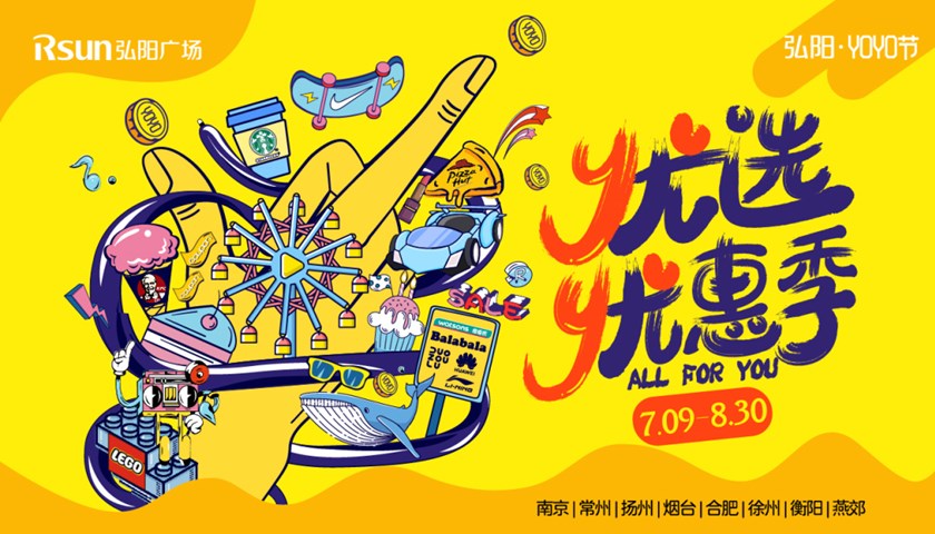 7月9日,全国各弘阳广场齐发声,集合娱乐业态/餐饮业态/零售业态同步发力,拉开2020首届“弘阳YOYO节·优选优惠季”的序幕。