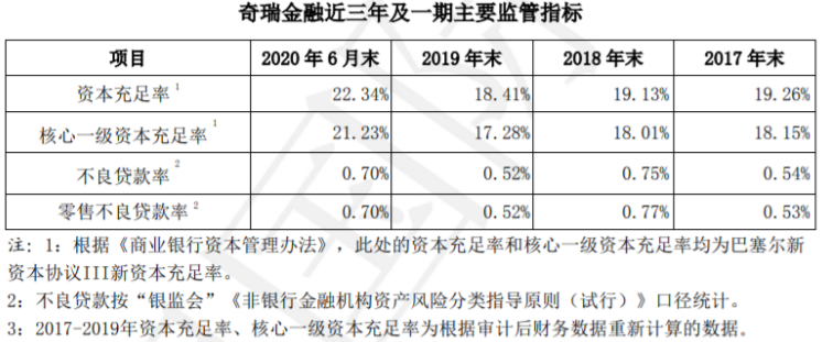 主要监管指标数据显示,奇瑞金融上半年资本充足率22.34%,核心一级资本充足率21.23%,较2019年末均有所上升。上半年不良贷款率及零售不良贷款率均为0.7%,与2019年末的0.52%相比也呈上升趋势。此外数据显示,其2018年末不良贷款率0.75%,零售不良贷款率0.77%。
