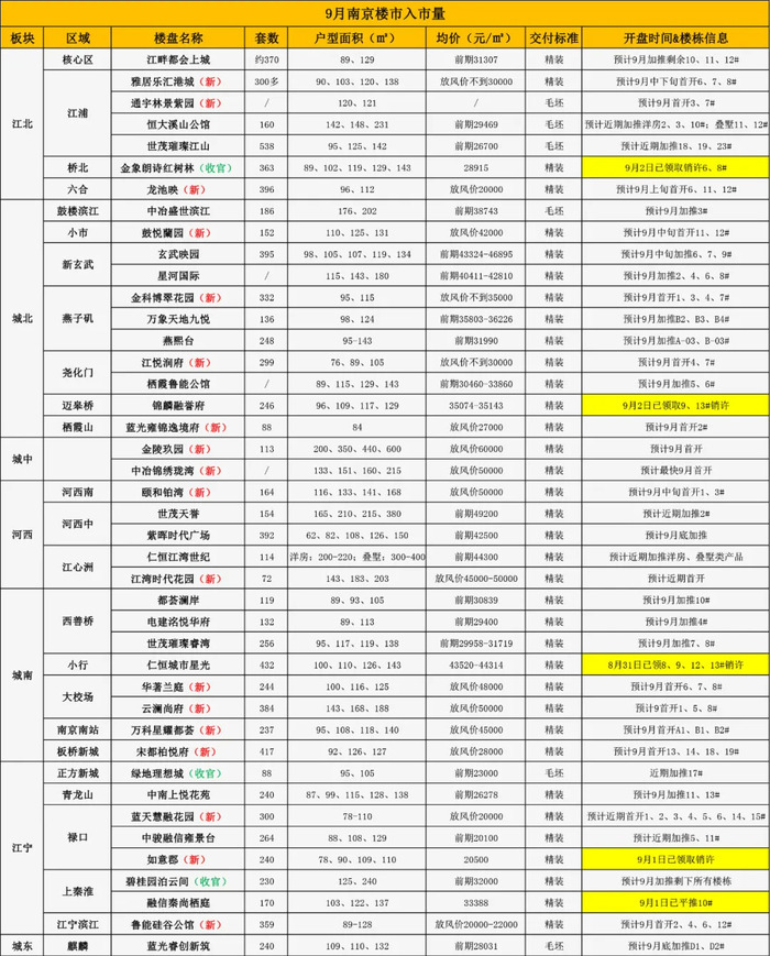 在刚刚过去的8月,南京楼市共有54家楼盘开盘加推,供应超9000余套房源,楼市去化冷热不均。金九传统热销季来袭,据本站统计,南京主城预计将有42盘近9000套房源上市,其中将有18家纯新盘首开入市,3家楼盘将在9月收官加推,已经有5家楼盘开始抢跑.....此外,河西重磅豪宅今日公布案名。