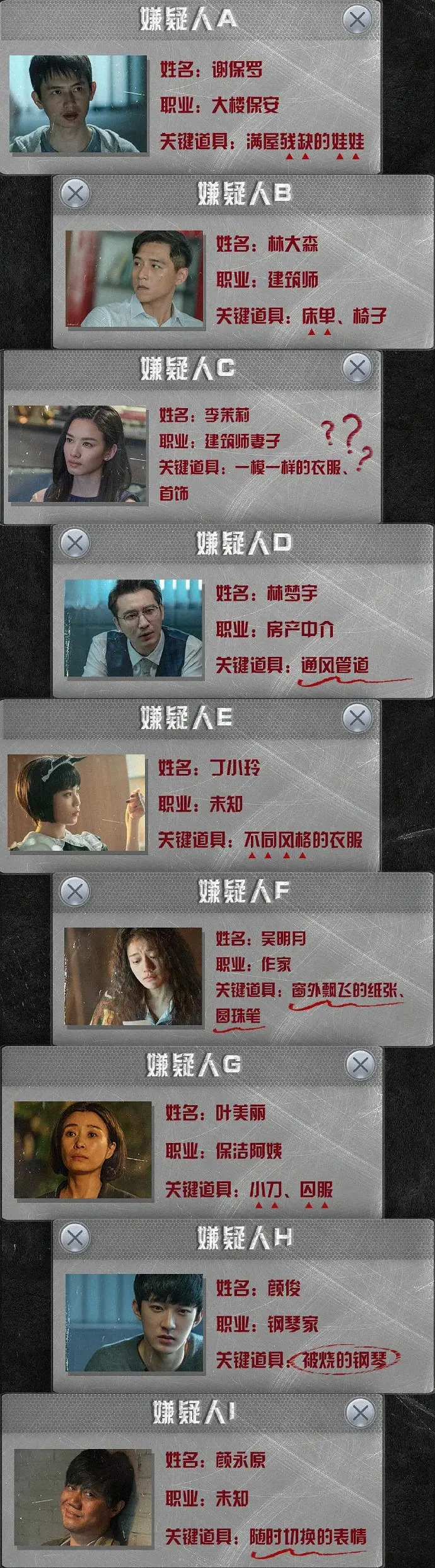 对于现在的剧集呈现效果,陈正道表示还是比较满意的。剧本杀和密室逃脱的呈现方式跟原著小说里统一,陈正道团队最早和编剧沟通时已经确定了这个结构。“刚好16集,每4集做一个阶段。前4集由故事中的旁支人物讲述自己的视角,7、8集开始进入搜证状态,给出一些反转的线索牌,之后是相互拆穿,后8集回溯整个案件的前世今生,把真相露出来。”