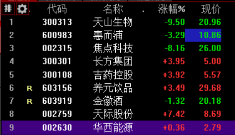 市场焦点股天山生物(9板)低开9.50%,股权转让概念惠而浦(8天7板)低开3.29%,跨境电商概念焦点科技(6天5板)低开8.16%,创业板低位股长方集团(2板)高开3.95%、吉药控股高开3.92%,食品饮料板块养元饮品(2板)高开3.49%,白酒股金徽酒低开1.32%,锂电池概念天际股份(2板)高开7.42%,固废处理概念华西能源(2板)高开0.36%。