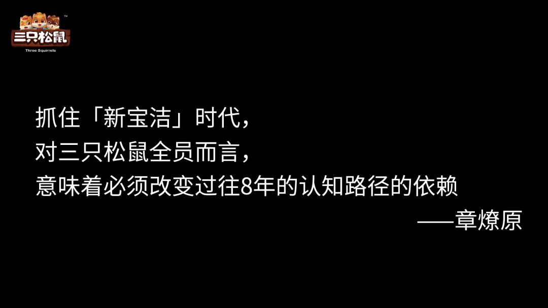 对于三只松鼠来说,随着这波新的营销闭环产生,我们最终要做的是为每一个家庭食品消费场景提供解决方案。我们必须抓住这一机遇期,完成多品牌的宝洁式升级。